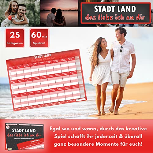 ✅ STADT LAND FLUSS FÜR PAARE: Gute Kommunikation ist die Basis einer guten Beziehung. Durch echte und ehrliche Gespräche wirst du eine viel intesivere Beziehung zu deinem Partner führen. Durch die 25 Kategorien und eure kreativen Einfälle wird die Kenntnis und das Verständnis für euren Partner auf ein ganz neues Level gehoben.