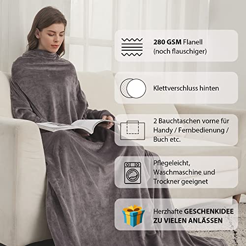 ✅Die Besonderheit und der Vorteil dieser Decke sind die Ärmel: man kann gemütlich zugedeckt noch immer ein Buch, Handy oder Tablet halten. Dank der praktischen Taschen kann man alle nützliche Sachen, wie Handy, Fernbedienung, Buch oder Tablet, immer bei sich haben.