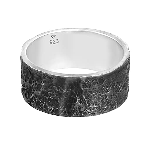 Details: Kuzzoi Herrenring (10 mm) Massiv Handgeschmiedet, Bandring für Männer aus 925 Sterling Silber, Cooler Silberring im Used…