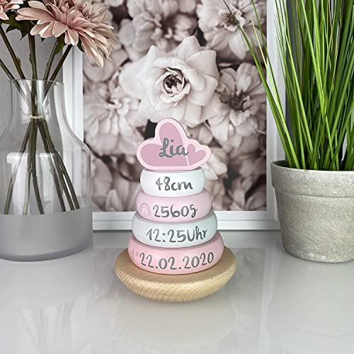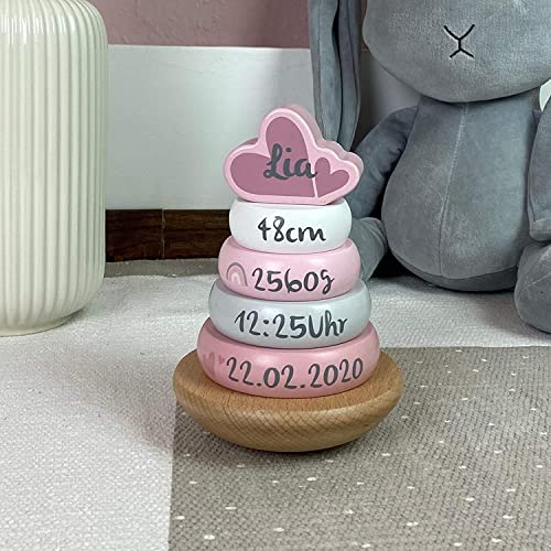Details: Label Label Stapelturm rosa – personalisierbar I Geschenk zur Geburt & Taufe I Handmade Baby Holzspielzeug I…