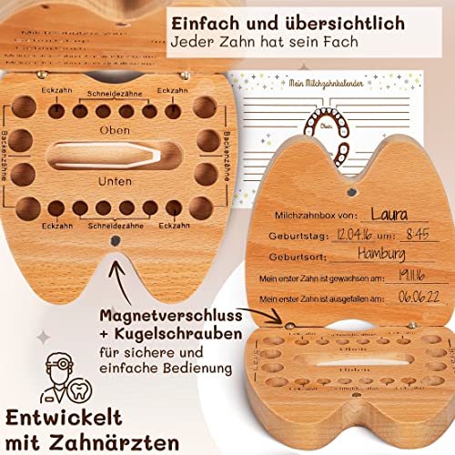 ✅EXTRAS: In unserer Michzahn-Aufbewarungsbox ist eine praktische Pinzette, eine Sanduhr, ein Baumwollbeutel, ein Milchzahnkalender, ein Brief der Zahnfee und eine Anleitung enthalten.