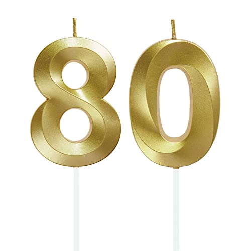 80 Geburtstag Zahl Kerzen Gold Geburtstagskerzen Cake Topper Geburtstag Kuchendeko Kuchen Dekoration ,für Hochzeit Party Hochzeit Jahrestag Feier Lieferungen
