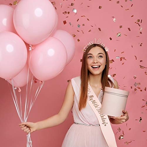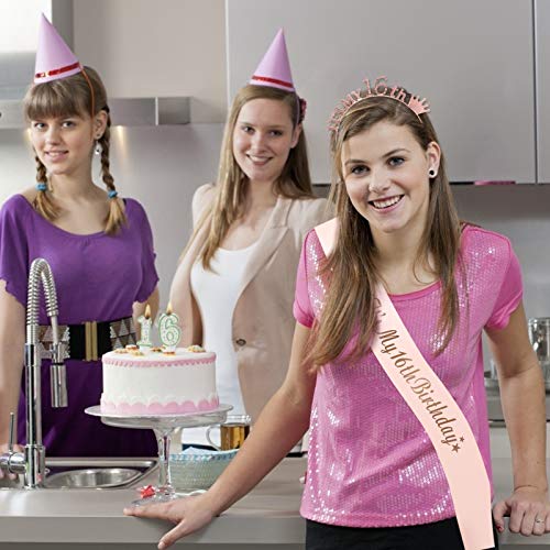 Details: LAMEK Rose Gold 16 Geburtstagsschärpe mit Geburtstag Krone 16th Geburtstag Dekoration Prinzessin Kristall Tiara…