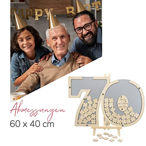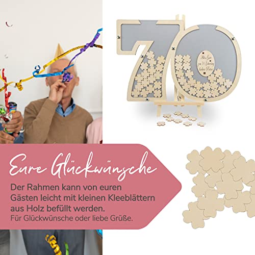 Details: Laserano Gästebuch 70. Geburtstag personalisierbar (Silber) 60x40cm