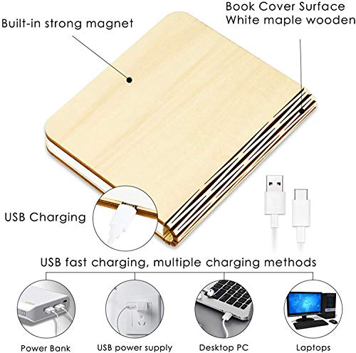 【Magnetisches LED-Licht】Unsere Buchlampe ist Buchdeckel aus weißem Ahornholz. Das Papier ist aus Kraftpapier hergestellt. Lichtdurchlässigkeit bis zu 90%, wasserfest, wärmeisolierend, reißfestso dass Sie nicht befürchten müssen, dass sie leicht zerstört wird!
