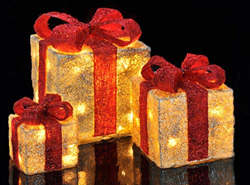 Details: LED Geschenkboxen mit Timer 3er Set – ROT – Weihnachts Dekoboxen warm weiß beleuchtet – Weihnachten Advent Winter…
