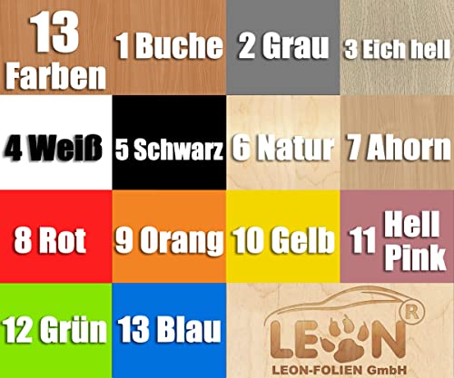 In 13 verschiedenen MDF Holzfarben und 7 LED-Farben verfügbar.