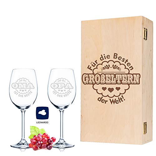 Details: Leonardo Weingläser Oma ist die Beste & Opa ist der Beste im 2er Set – inkl. gravierter Vintage-Holzkiste – Geschenk für…