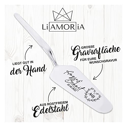 Details: Liamoria® Tortenheber, Kuchenheber, Tortenschaufel mit Gravur – Hochzeitsgeschenk personalisiert zum Jahrestag aus…