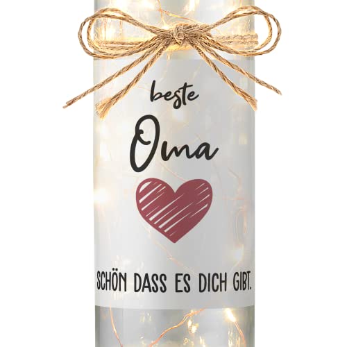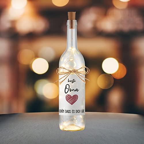 Details: Liebtastisch LED Flaschenlicht mit Spruch „Beste Oma, schön dass es dich gibt“ – Geburtstagsgeschenk Beste Oma Geschenk Geburtstag – Flasche mit Lichterkette Flaschenkorken Korken – Inkl. Batterien