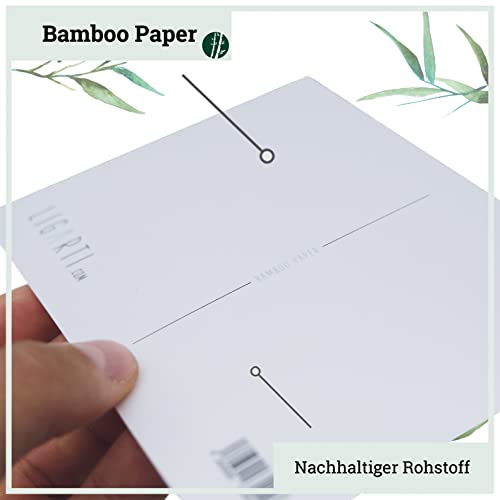 🌿𝗗𝗲𝘁𝗮𝗶𝗹𝘀 – Original Postkarten 6er Set aus Bambuspapier von Ligarti. Maße 15cm x 10cm.