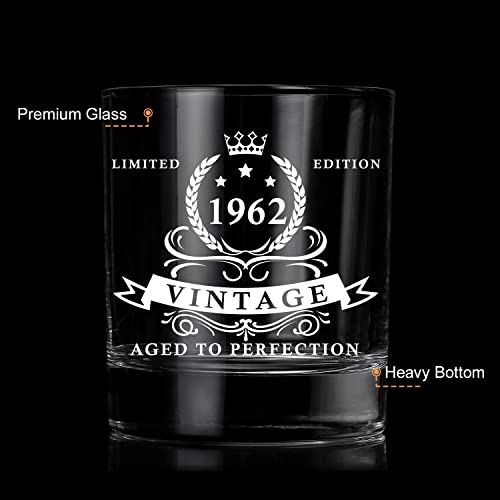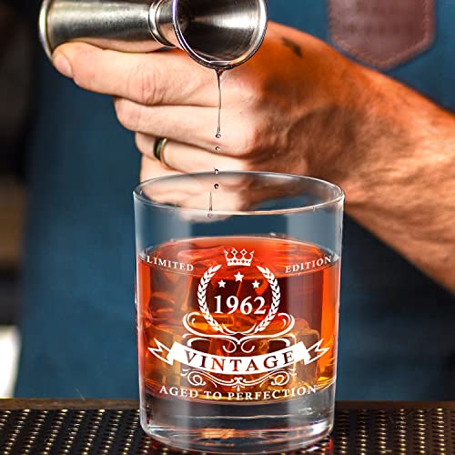 【Erstaunliche Geschenke zum 60. Geburtstag für Männer】 Wenn Sie nach einem Geschenk zum 60. Geburtstag für Opas, Papa, Ehemann, Freunde, Bruder suchen? 1962–60 Jahre alt – bis zur Perfektion gereift, ist dieses Whisky-Bourbon-Glas Ihre beste Wahl. Wunderbares Whisky-Geschenk zum 60. Geburtstag, Dekorationen zum 60. Geburtstag, 60. Jahrestag und mehr zum 60-jährigen Jubiläum.