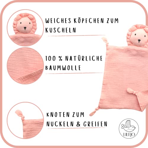 🎁 BABY GESCHENK – bestehend aus Schnuffeltuch mit Löwenkopf und einem Greifling. Außerdem bekommst du eine Grußkarte für deine eigenen Glückwünsche gratis mit dazu.