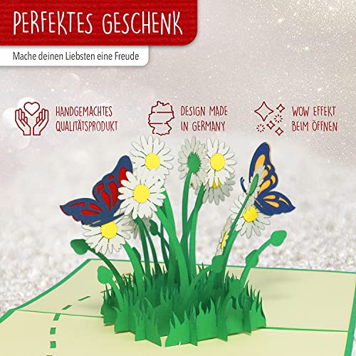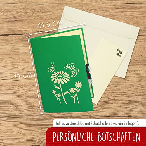 LIN 3D Pop-up-Karten zum Geburtstag oder Gute Besserung mit viel Glück, Muttertagskarte, Schmetterlinge, Blumen