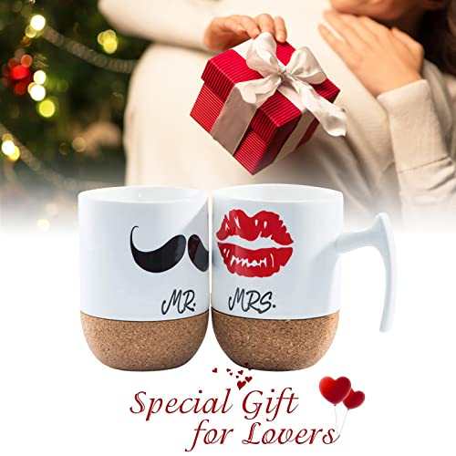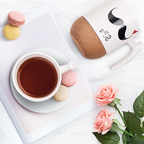Love-KANKEI MR MRS Tassen Kaffeetassen Hochzeitsgeschenk Tassen für Paare 300ml, Korkboden Design Keramik, Geschenk für…
