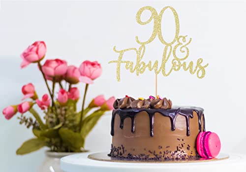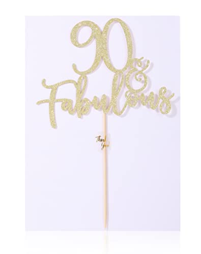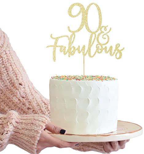 Details: LOVENJOY Cake Topper 90 und Fabulous Geburtstag Tortendeko Gold Glitter 90. Kuchen Topper für 90th Birthday Party Kuchen…