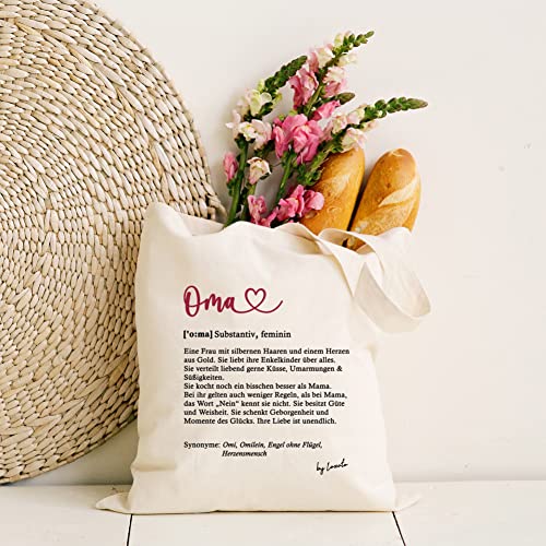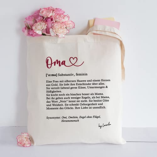 GESCHENK FÜR OMA GEBURTSTAG – Tragegriffe haben eine Länge von 70 cm, wodurch die Stofftasche sehr bequem zum Tragen ist. Die tasche oma zum Umhängen ist ideal zum Einkaufen, Spaziergang im Park.