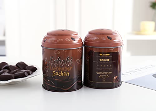 Schokoladensocken als Schoki Geschenk für Frauen und Männer, eine großartige Ergänzung für Schokoladenliebhaber. Sie bekommen hiermit 1 Paar Schoki-Socken in einer Design Schokoladendose als Verpackung geliefert.