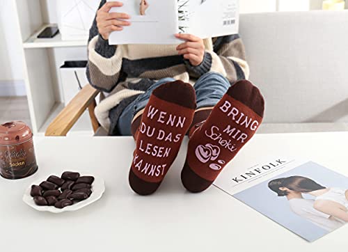 ✅ EINHEITSGRÖSSE UND RUTSCHFEST: für Schuhgrößen 37-43 geeignet. Die Socken sind weich und sehr gut dehnbar. Der Spruch auf der Sohle sorgt für eine rutschfeste Bewegung auf glatten Böden.