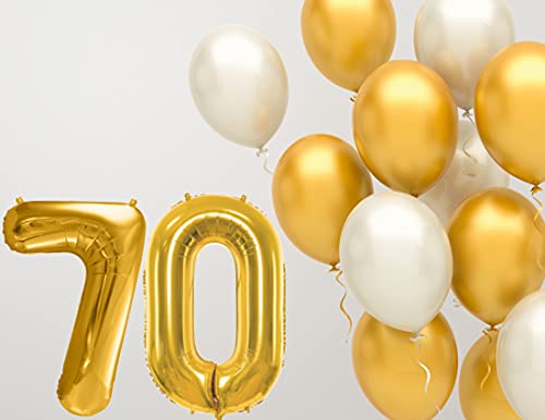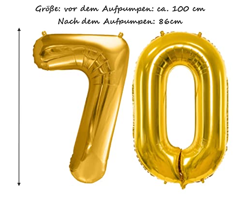 🎈 PERFEKT KOMBINIERBAR mit Luftballons 70 Kerze 70 Geschirrset 70 Girlande für die festliche Deko 70. Geburtstag Party. 🎉 Lieferumfang: Set Ballon 70 XXL: enthält 1 Stück ungefüllter goldener Folienballon Nummer 7 Gold und 1 Stück Nummer 0 Farbe Gold Ballon für 70. Geburtstag.