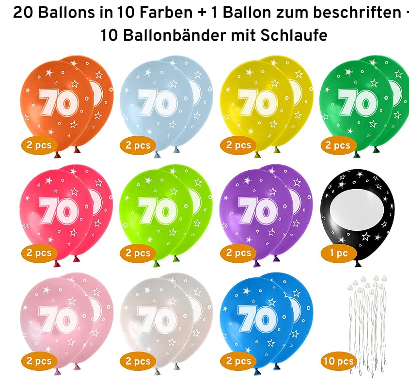 🎈 KUNTERBUNTES BALLONSET 20 STÜCK INKL BESCHREIBBAREM BALLON UND BALLONBÄNDERN MIT VERSCHLUSS – Geeignet für Deko 70 Geburtstag – Für Männer und Frauen