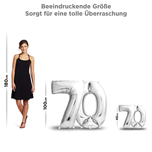 Details: Luftballons 70. Geburtstag XXL Silber – Riesen Folienballon in 2 Größen 40″ & 16″ – 101cm + 40cm Geburtstagsdeko Set – Vier Zahlen – Ideal als Deko – fliegt mit Helium