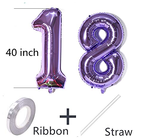 Details: Luftballons Zahl 18, Zahl ballon 18 lila Luftballons 18. Geburtstag deko Mädchen Folienballon 18 Zahlballons 18 lila…