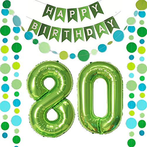 Details: Luftballons Zahl 80 Grün + Happy Birthday Girlande + banner Folienballon 80.Geburtstags deko frau mann ballons 80 Jahre…