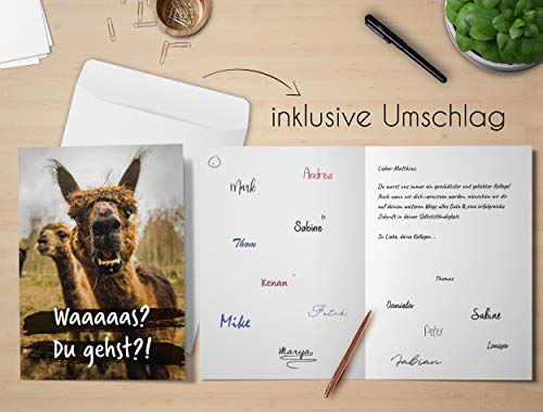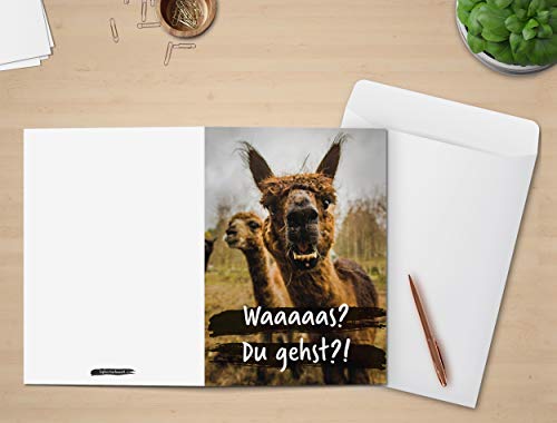 Details: Sophies Kartenwelt Lustige Abschiedskarte im DIN A4 Format mit Umschlag “Alpaka” – XXL Klappkarte mit viel Platz für…