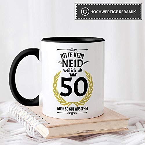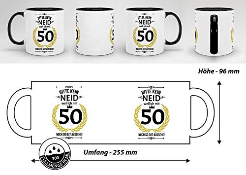 Details: Lustige Tasse zum 50. Geburtstag mit Spruch – Bitte kein Neid, Weil ich so gut aussehe – Geschenkidee für Freunde…