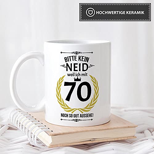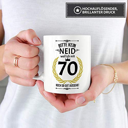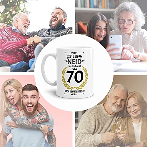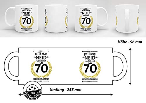 Details: Lustige Tasse zum 70. Geburtstag mit Spruch – Bitte kein Neid, Weil ich noch so gut aussehe – Geschenkidee für Freunde…