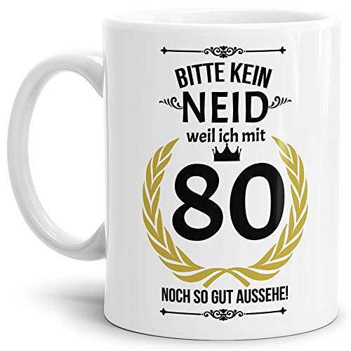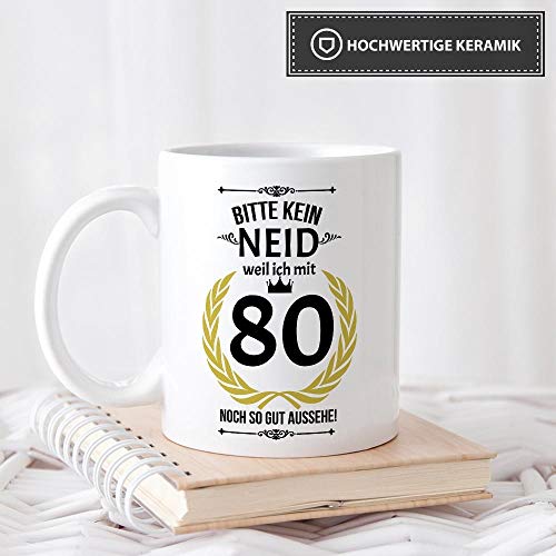 Details: Lustige Tasse zum 80. Geburtstag mit Spruch – Bitte kein Neid, Weil ich noch so gut aussehe – Geschenkidee für Freunde…