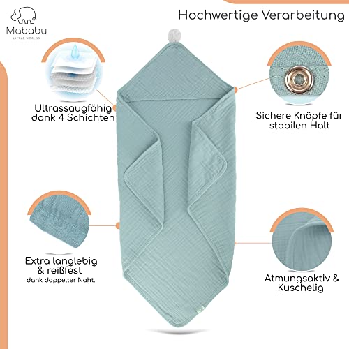 Details: MABABU Babyhandtuch mit Kapuze – Bio-Baumwolle, GOTS-Zertifiziert – Weiches Kapuzenhandtuch für Neugeborene & Kinder…