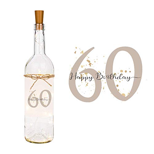 ❤️ Bezauberndes Flaschenlicht mit dem Spruch “Happy Birthday” und der Zahl 60 als persönliche Aufmerksamkeit zum 60. Geburtstag