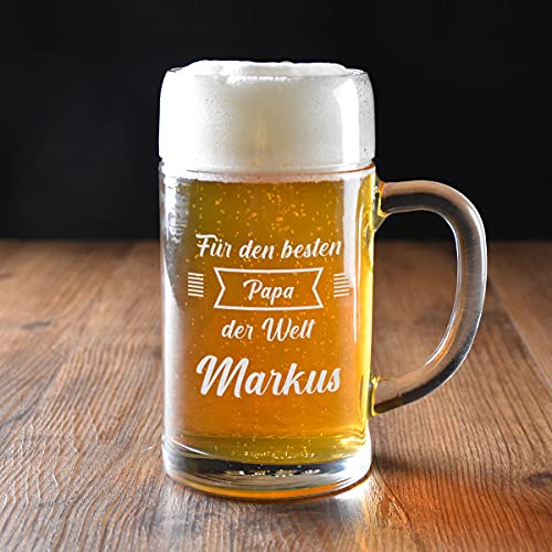Details: Maßkrug mit Gravur eines Names – Bierkrug Maß 1000 ml personalisiert – Geschenk für Männer, Väter, Freunde – Oktoberfest…