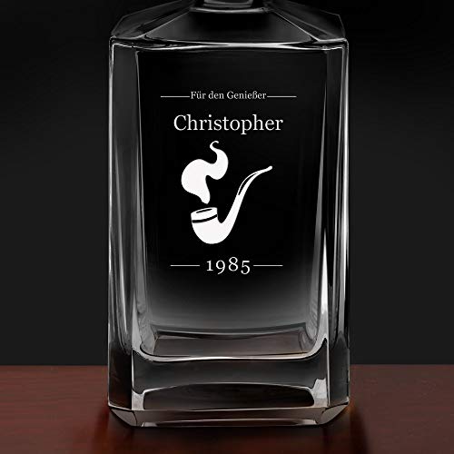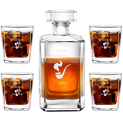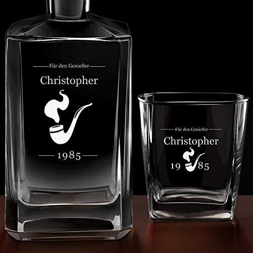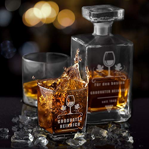 Maverton Whiskey Karaffe + 4er Whiskygläser Set mit Gravur – 700ml Whisky Dekanter – Geschenk zum Geburtstag für Männer…