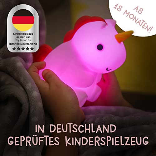 🦄 WEICH & SICHER – die Einhorn Lampe aus angenehmem Silikon animiert zum Greifen und Drücken – ohne die Gefahr von verschluckbaren Kleinteilen dank eingegossener Augen!