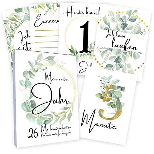 👶 DAS IST DRIN – Inhalt: 26 Meilenstein Karten in schönem Design – Material: Dickes 400 g/m² Papier – schicker Qualitätsdruck – Größe: DIN A6 (10,5 x 14,8 cm)