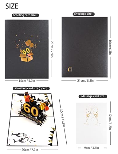 💌 Die Karte zum 60. Geburtstag enthält: 1 3D-Pop-up-Geburtstagskarte + 1 Mitteilungskarte + 1 Umschlag zum Verpacken der Karte. Was die Größe betrifft, ist die Geburtstagskarte 8,3 Zoll * 6,3 Zoll (gefaltet) und der Umschlag ist 8,5 Zoll * 6,11 Zoll.