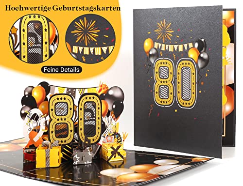 Details: Menwings 3D Geburtstagskarte zum 80, PopUp Geburtstag Karte, Geburtstagskarten für Mädchen und Jungen, Happy Birthday…