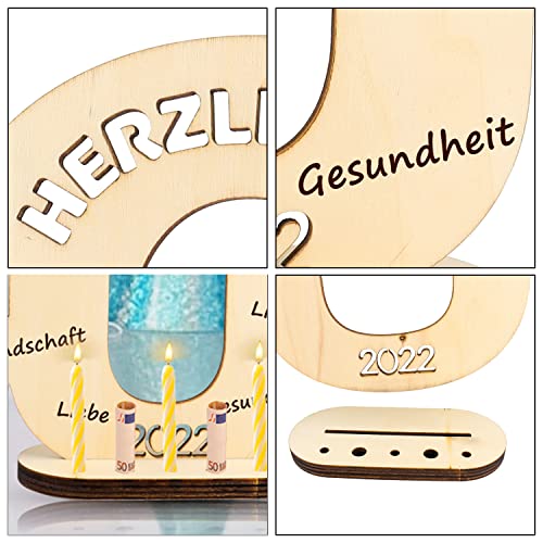 【Cleveres Design】 Das gästebuch geburtstag 50 besteht aus 2 Teilen, darunter ein digitales Holzbrett mit eingraviertem Hohlsegen und einem Holzsockel. Die Basis ist mit 5 runden Löchern ausgestattet: 5 mm * 3.8 mm * 2, das kleinere Loch kann für handelsübliche Geburtstagskerzen verwendet werden, die größeren Löcher können für aufgerollte Banknoten verwendet werden, und das Design ist clever und praktisch.