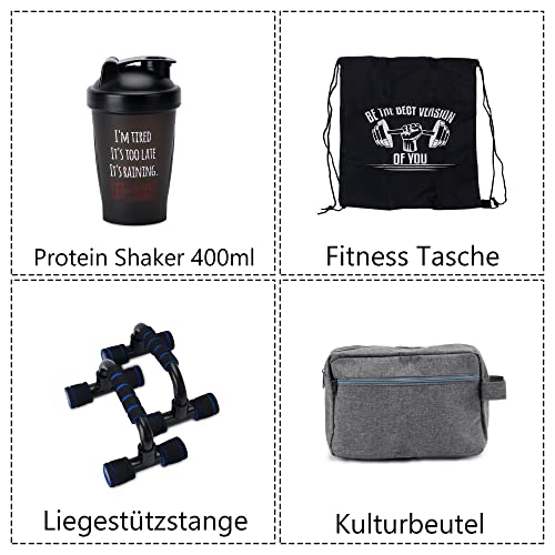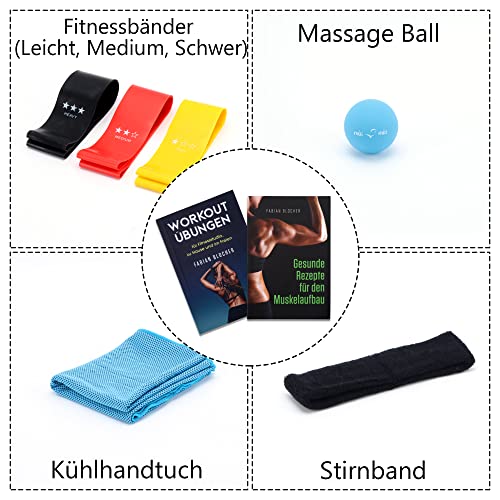 𝐇𝐎𝐂𝐇𝐖𝐄𝐑𝐓𝐈𝐆, 𝐀𝐁𝐖𝐄𝐂𝐇𝐒𝐋𝐔𝐍𝐆𝐒𝐑𝐄𝐈𝐂𝐇 𝐔𝐍𝐃 𝐄𝐈𝐍𝐅𝐀𝐂𝐇 – Auf Boxen und Tüten verteilt findest du insgesamt 24 Geschenke für Frauen und Geschenke für Männer. Von Hanteln über Fitnessbänder bis hin zum Liegestützgriff ist alles dabei, genug Gadgets für Frauen / Männer um richtig loszulegen. Zusätzlich sind zwei Bücher im Geschenkset enthalten, welche dich bei deiner Ernährung und Anwendung der Fitnessgeräte unterstützen!