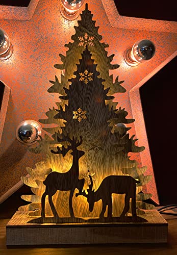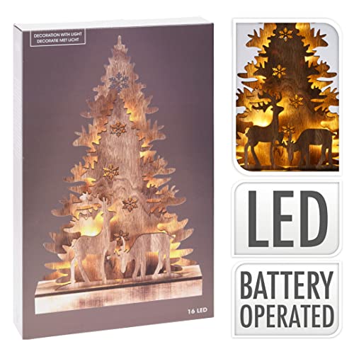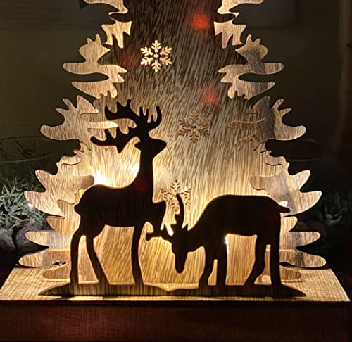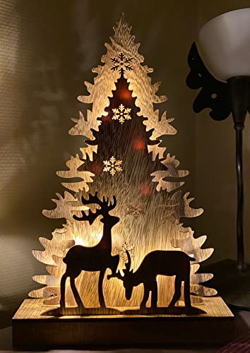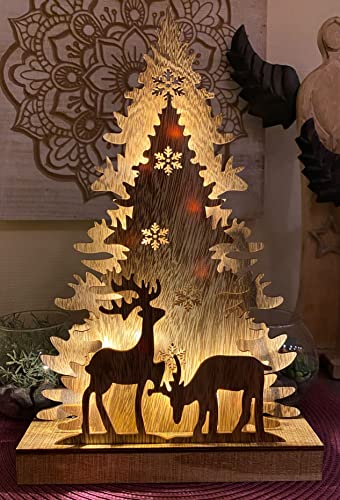Details: MIJOMA Weihnachtsdekoration Holzdekoration Holzdeko Waldszenerie zu Weihnachten mit LED-Beleuchtung, Lichterbaum Baum…