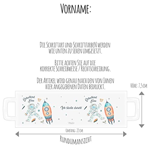 Details: Mikalino Emaille Tasse Astronaut Schulkind – ein Flug ins All personalisiert mit Wunschname | handbedruckt in…