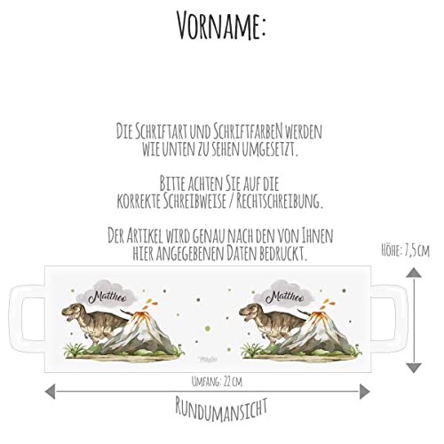 Details: Mikalino Emaille Tasse Tyrannosaurus Rex personalisiert mit Wunschname | handbedruckt in Deutschland, Farbe:weisssilber…
