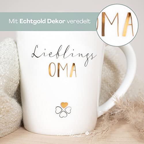 Details: mintkind® Kaffeebecher Lieblings Oma | Geschenke-Idee für die Oma| Große Kaffee-Tasse mit Echtgold-Dekor als Geschenk…