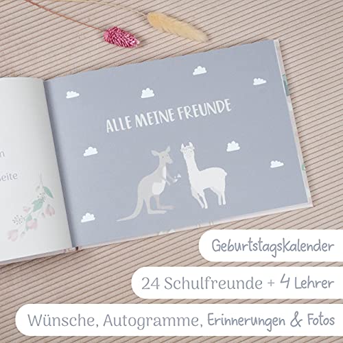 🦙 HÜBSCHES DESIGN – Jede Seite in diesem Freundschaftsbuch ist fantasievoll gestaltet und verzaubert alle Alpaka und Regenbogen Fans. Ein zauberhaftes Freundebuch für den Schulanfang.