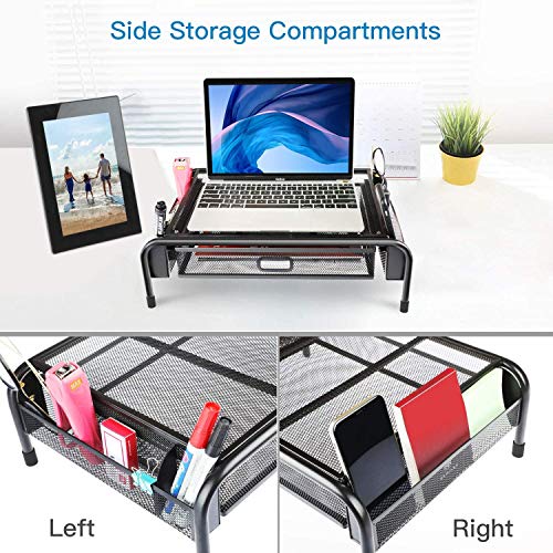 GROSSER LAGERRAUM & KLATTERFREIER SCHREIBTISCH: Dieser Monitorständer verfügt über eine ausziehbare Schublade und zwei Seitenfächer. Sie können Notizbücher, Papiere und Taschenrechner in die Schublade legen, während Sie Stifte einsetzen