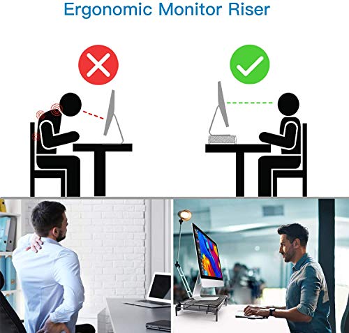 ERGONOMIC COMPUTER MONITOR STAND RISER: Heben Sie Ihren Monitor um 5,4 Zoll an, heben Sie den Bildschirm auf Augenhöhe an, entlasten Sie Nacken, Schulter und Rücken und verbessern Sie die Arbeitseffizienz