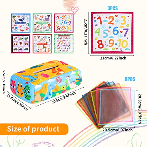 【Frühes Lernspielzeug】Toddler Tissue Box Spielzeug fördert Babys sensorische Entwicklung und trainiert das Gehirn durch Farbe, Klang und taktile Wahrnehmung, ein großes Montessori-Spielzeug, perfekt für das Lernen von Farben, Zahlen und die Verbesserung der kognitiven und sensorischen Fähigkeiten, während die Entwicklung von Griff und Feinmotorik